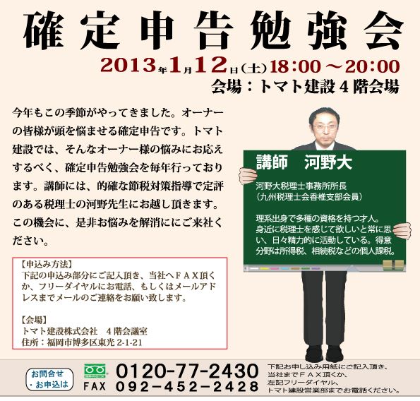 確定申告勉強会開催します。